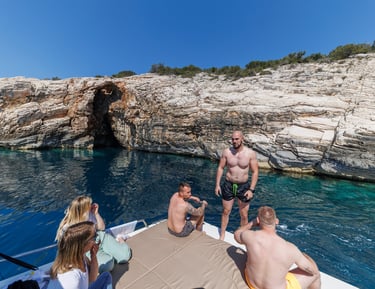 Enjoy a relaxed private boat tour with swimming, snorkeling and hidden bays around the Zadar archipelago.