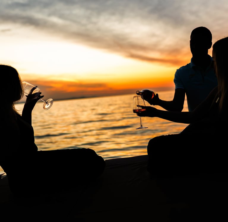 Experience the magic of sunset from the sea with a relaxing cruise and a glass of Rose.